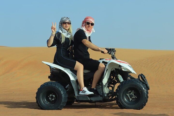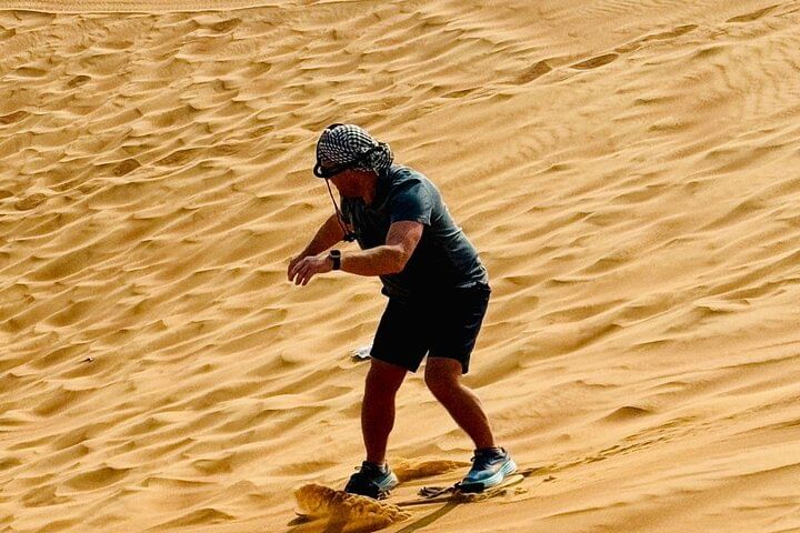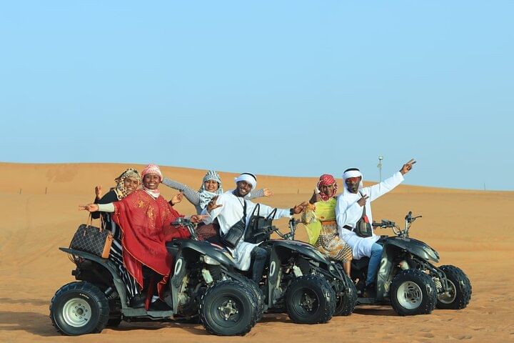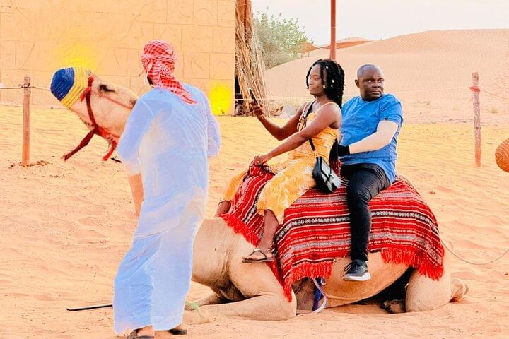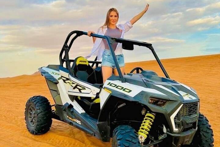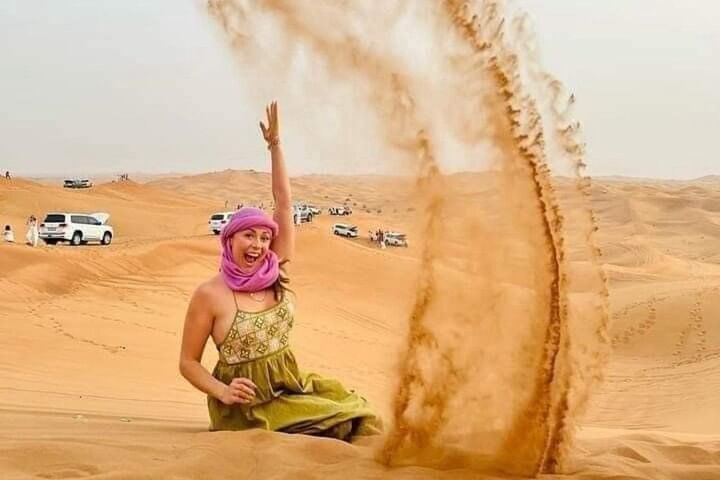 Be picked up from anywhere in Abu Dhabi. Buckle up for a thrilling dune bash led by a licensed safari guide, glide down golden slopes with free sandboarding, and snap sunset photos that belong on your feed. Enjoy unlimited camel rides and meet a majestic falcon up close. Want more adrenaline? Add a quad bike or dune buggy ride in the open desert (optional upgrade).