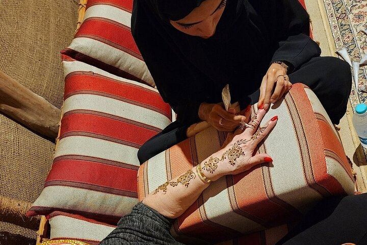 Back at the premium Bedouin-style camp, unwind with shisha and try henna art. Then settle in for a BBQ dinner under the stars featuring Arabic and international dishes, with vegetarian options available. As the night sky lights up, so does the entertainment: Fire Show, Belly Dancing, Tanoura Light Dance, and more!