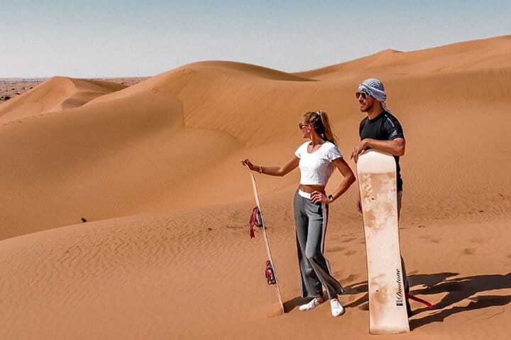 Once you reach the dunes your licensed guide takes you on an exciting ride across the golden sands with dune bashing. sunset photo stops. free sandboarding and unlimited camel rides. Get up close with a majestic falcon and enhance your adventure with optional quad biking or dune buggy rides available at an additional cost.