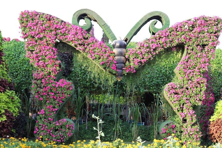 Walk among millions of blooming flowers arranged in artistic shapes and massive floral sculptures at Miracle Garden, then explore the Butterfly Garden, where over 15,000 butterflies fly freely in beautifully designed, climate-controlled domes.
